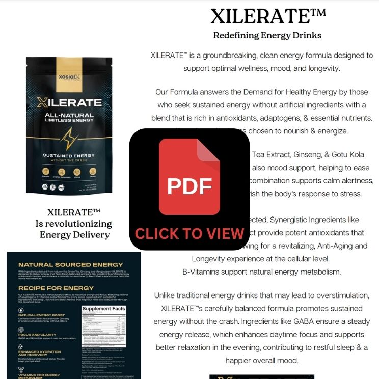 XILERATE™ - For those who seek sustained energy without artificial ingredients, our formula answers with a blend that is rich in antioxidants, adaptogens, and essential nutrients. Every ingredient was chosen to nourish and energize, making XILERATE™ an ideal option for people who prioritize health and wellness but still want that much-needed boost to fuel their active lives.